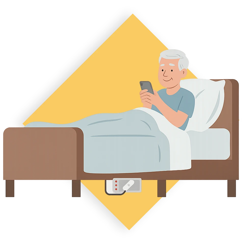 Collocabile sotto il materasso, in grado di rilevare la presenza/assenza della persona, lo stazionamento prolungato, la qualità del sonno e monitorare la routine.